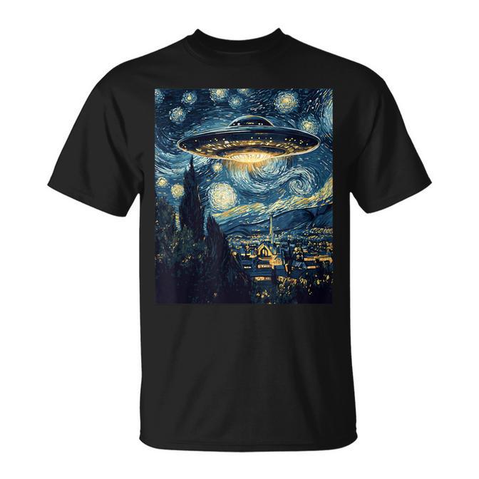 Ufo Aliens Flying Saucer Van Gogh Style Starry Night T-Shirt