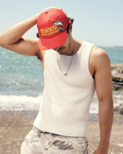 The Catch and Release Cap features a mid-profile fit with a snapback closure for adjustable comfort. Finished with an embroidered front graphic.