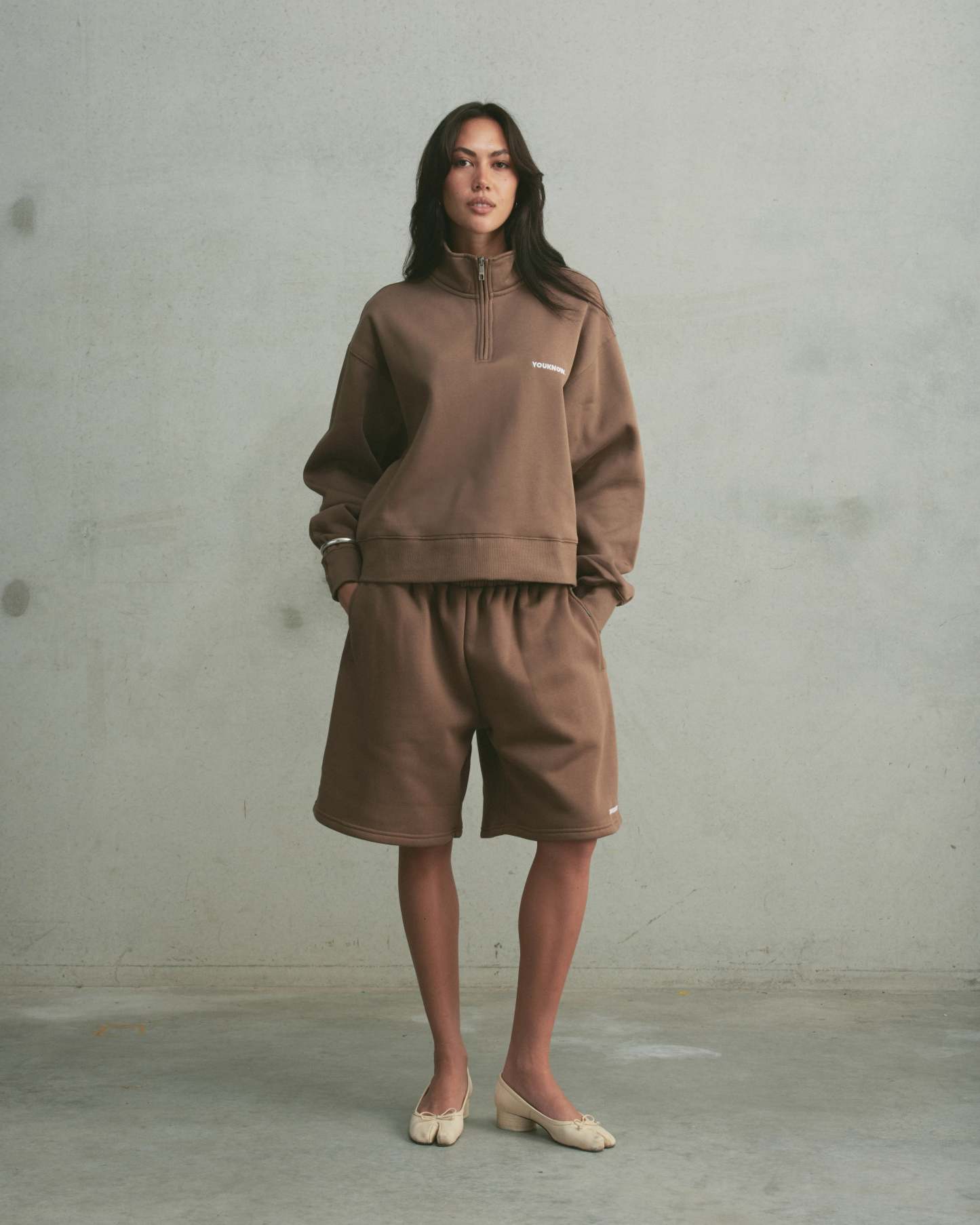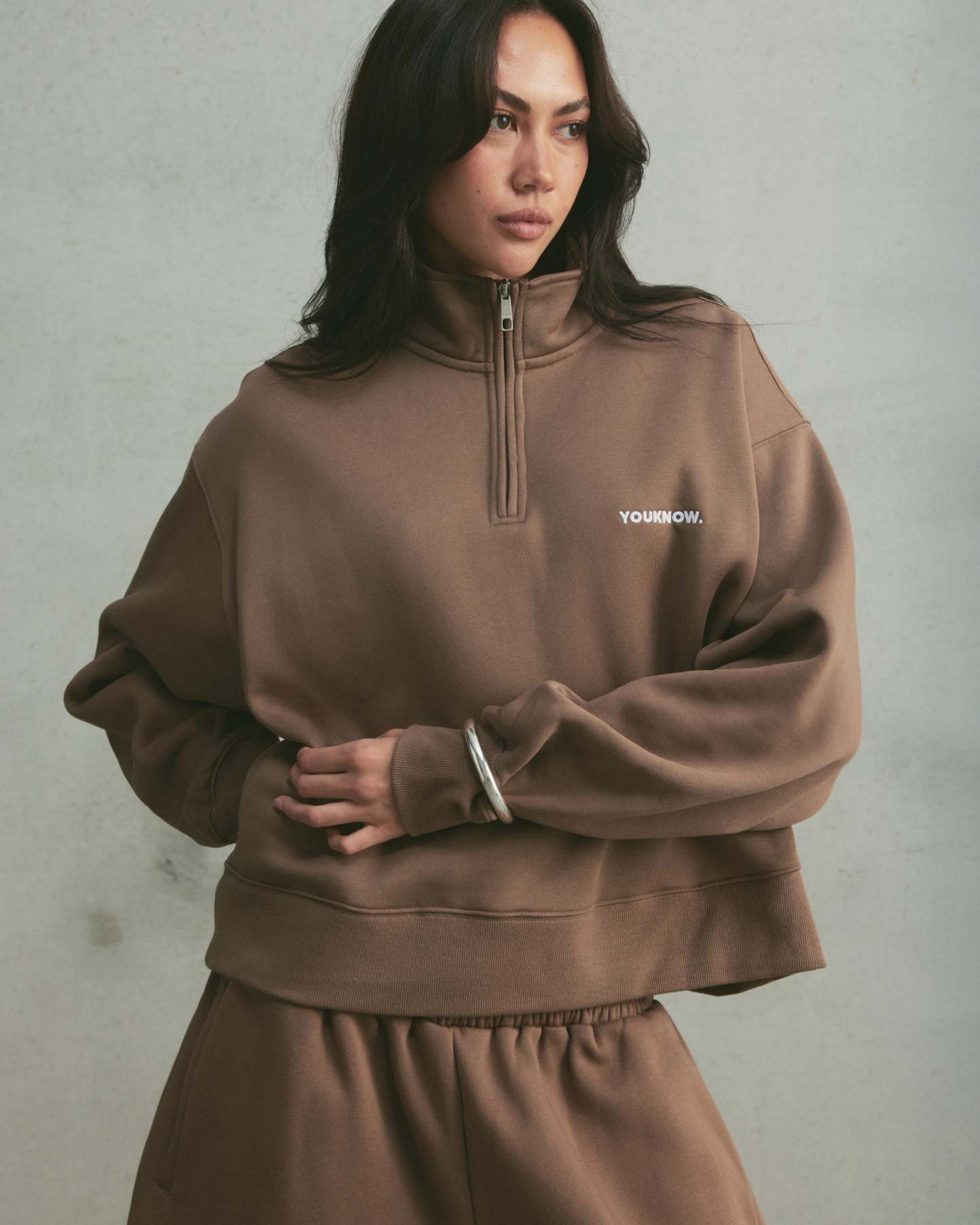 The Core 1/4 Zip Pullover features a relaxed fit with a mock neck and quarter-zip closure. Finished with a subtle embroidered chest logo and clean, invisible pockets for a streamlined everyday look.