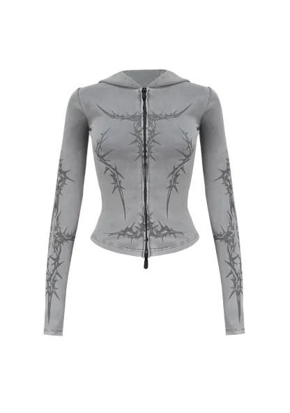 CURSE SCULPT STRETCH ZIP HOODIE WASHED GREY