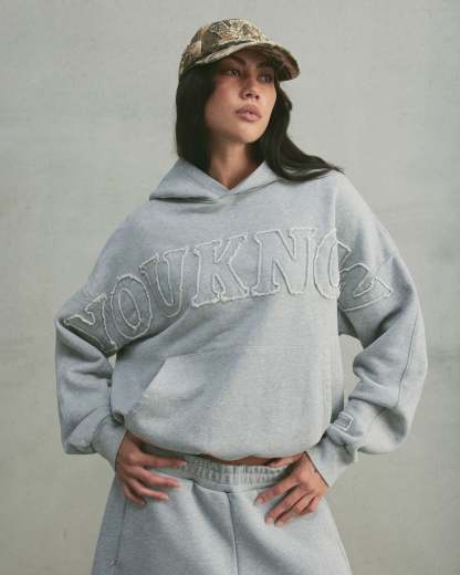 Distressed Applique Hoodie | GREY MARLE