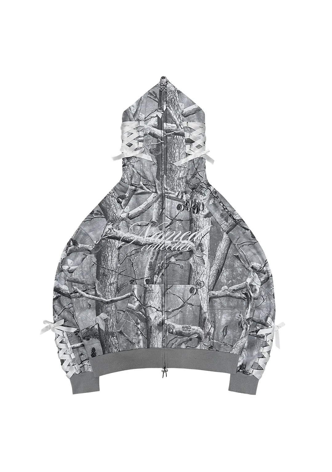 ★ White ribbon lace corset feature on the sleeves and either side of hood