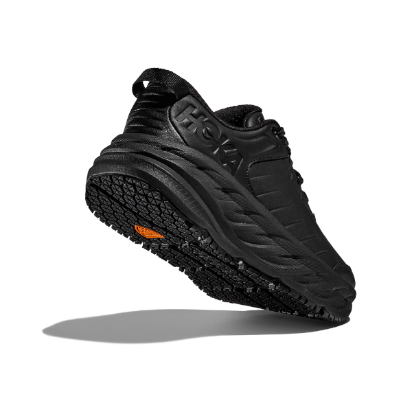 One of the first line extensions of the beloved Bondi family, the Bondi SR takes the most cushioned shoe in the HOKA lineup and reworks the silhouette to handle the demands of daily life. Engineered with an EVA midsole for plush, all-day cushioning great for those with plantar fasciitis or bunions, this workplace warrior has been updated with water-resistant leather and a slip-resistant outsole. Boasting a proprietary outsole compound tested against industry standards, the Bondi SR features an ultra-grippy, full ground contact rubber that stands up to the service industry and medical field alike.