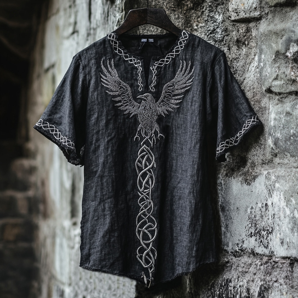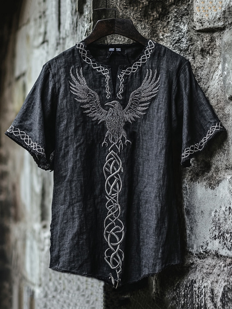 Men's Celtic Knot Raven Embroidered Vintage Shirt