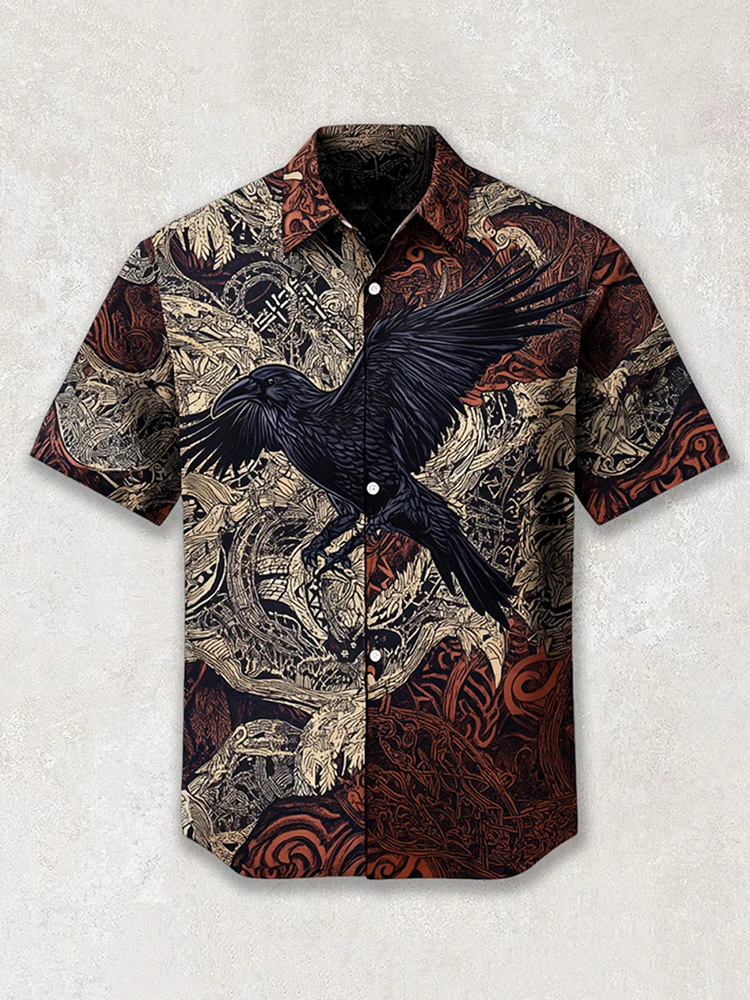Men's Viking Celtic Knot Raven Emblem Totem Shirt