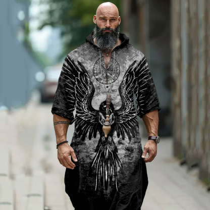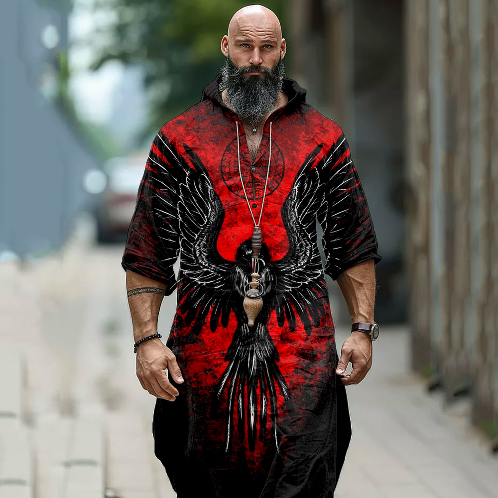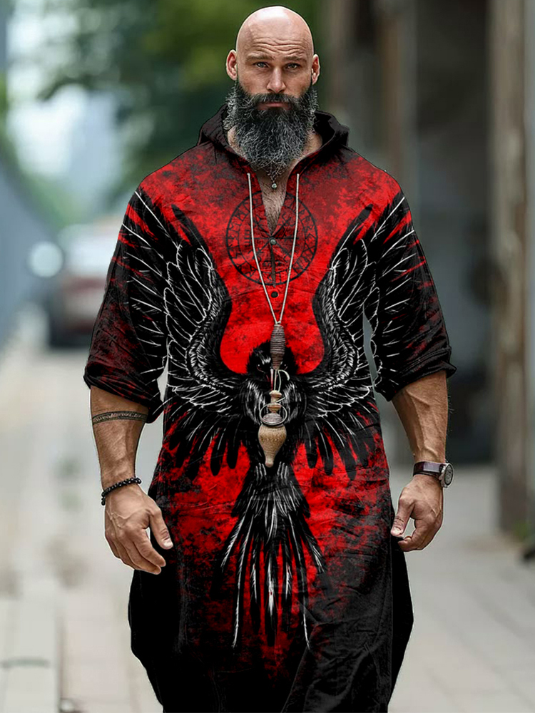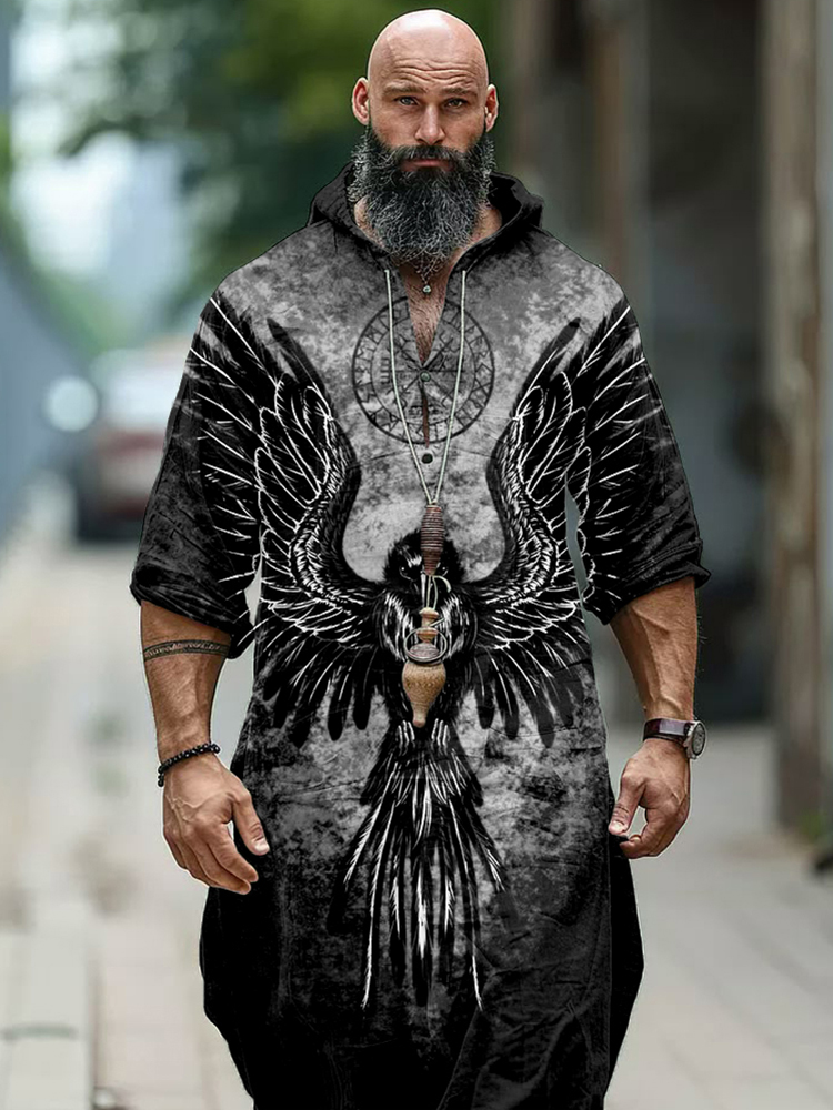 Men's Viking Raven And Vegvisir Hooded Linen Tunic