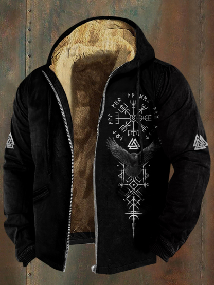 Men's Viking Raven Runes Pattern Zipper Jacket