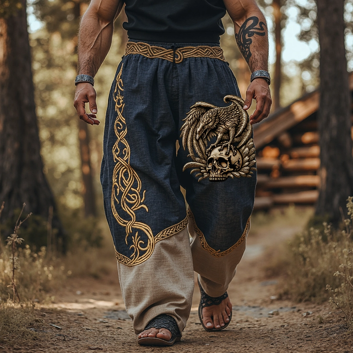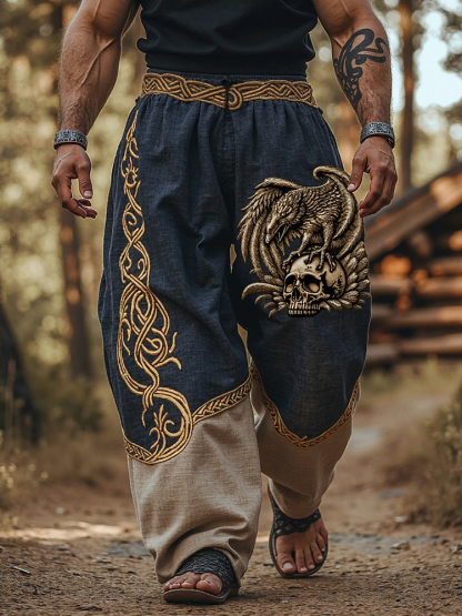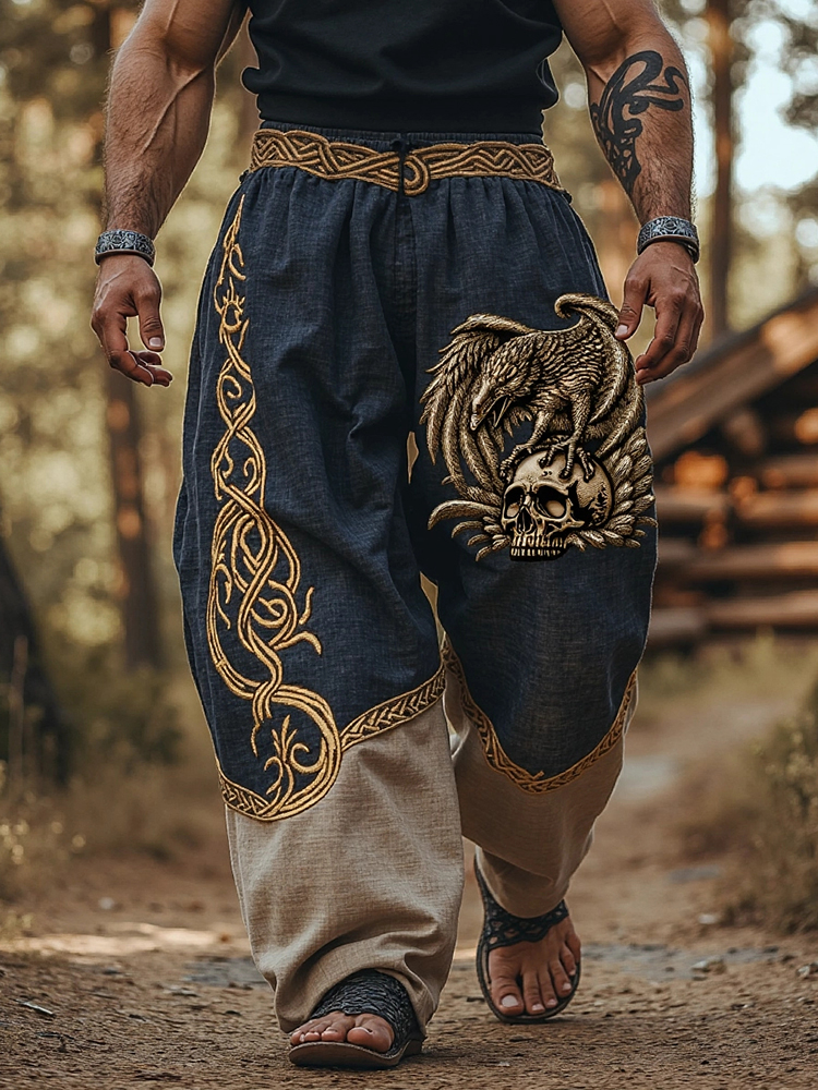 Men's Viking Skull Raven Celtic Art Linen Casual Pants