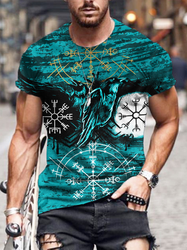 Men's Viking Vegvisir And Raven Round Neck T Shirt