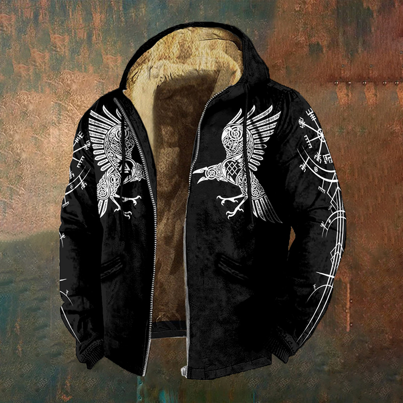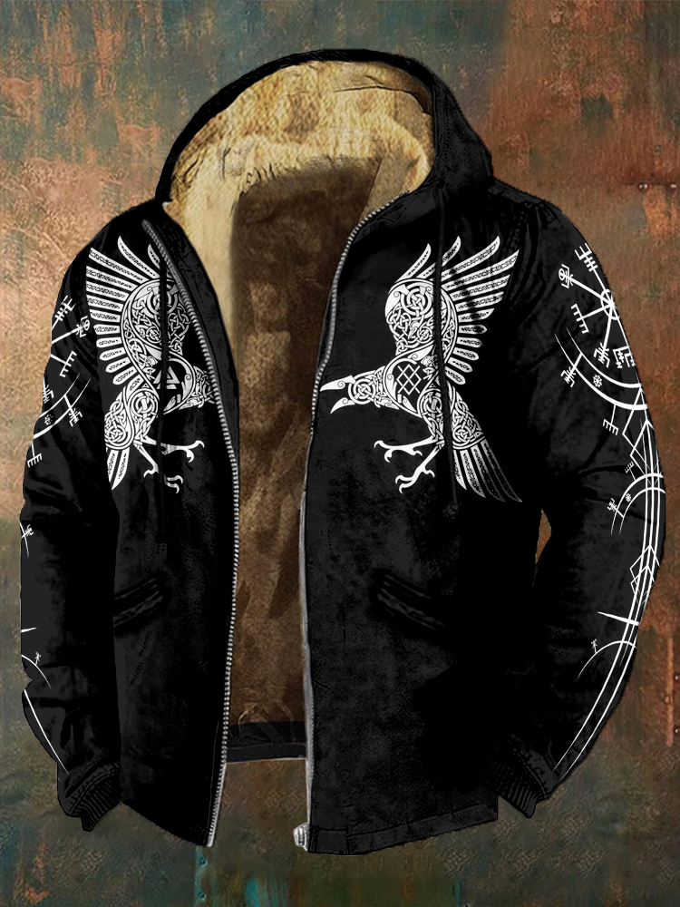 Men's Viking Vegvisir Celtic Raven Vintage Full Zip Hoodie