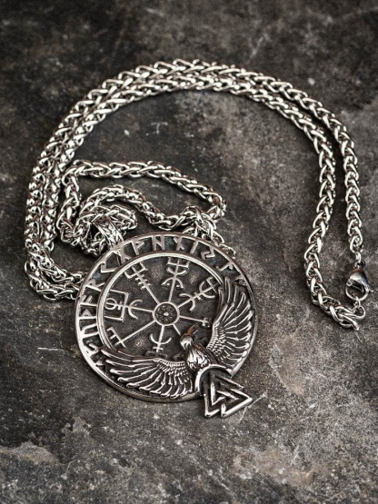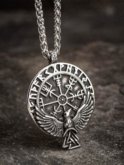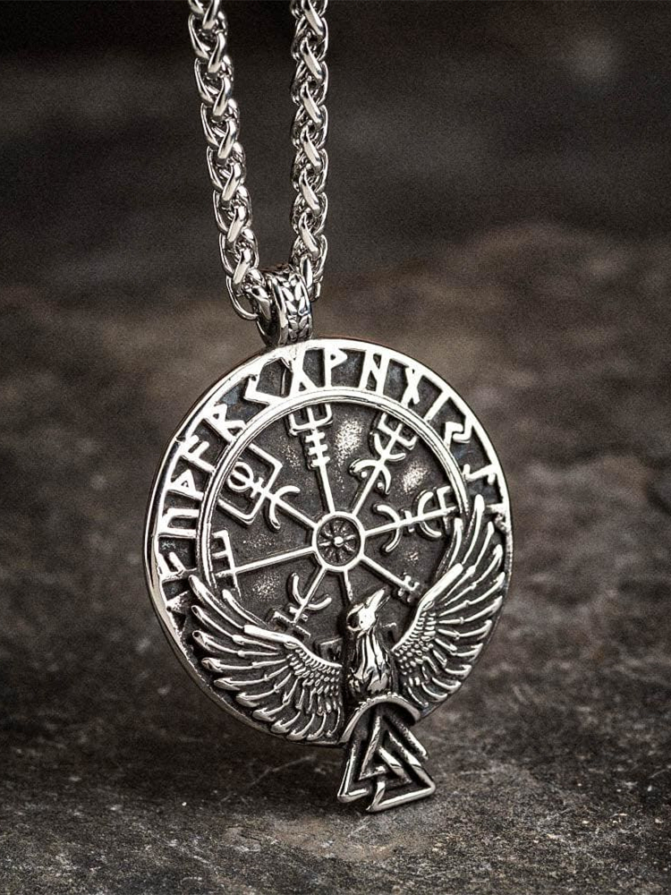 Men's Viking Vegvisir & Raven Stainless Necklace