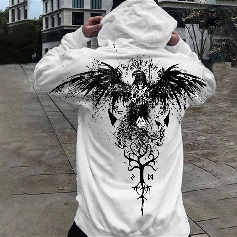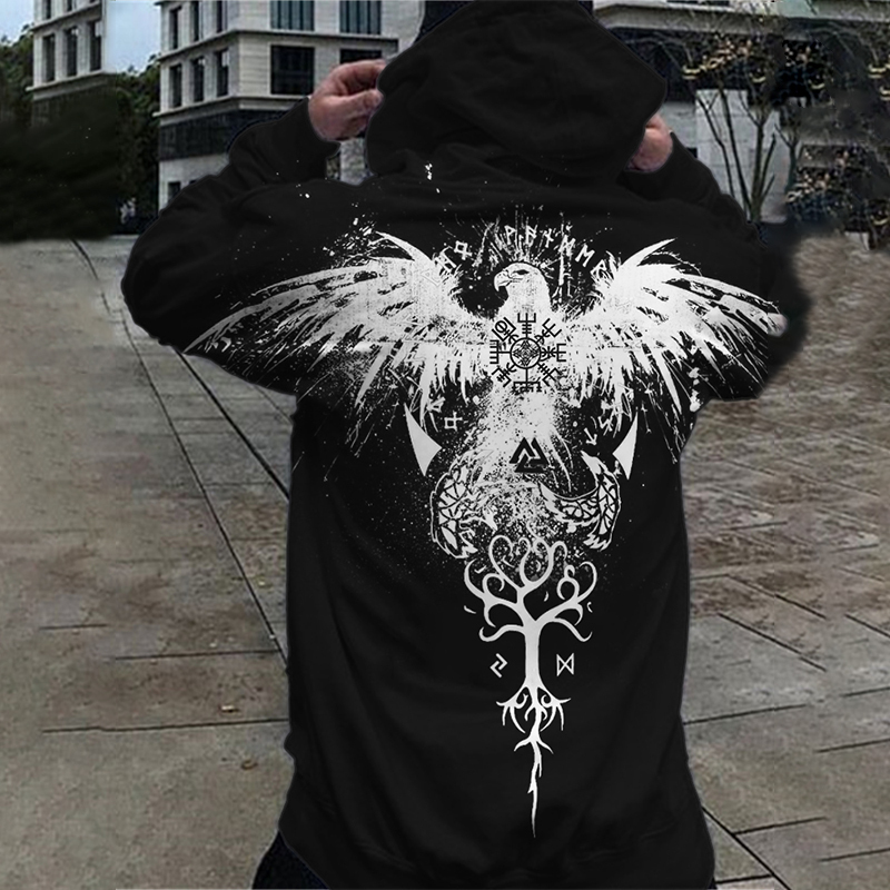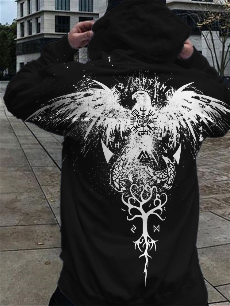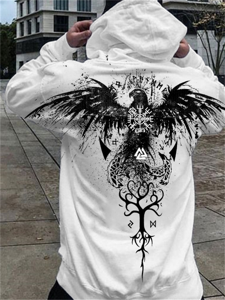 Men's Viking Vegvisir Tree Of Life Raven Graphic Hoodie