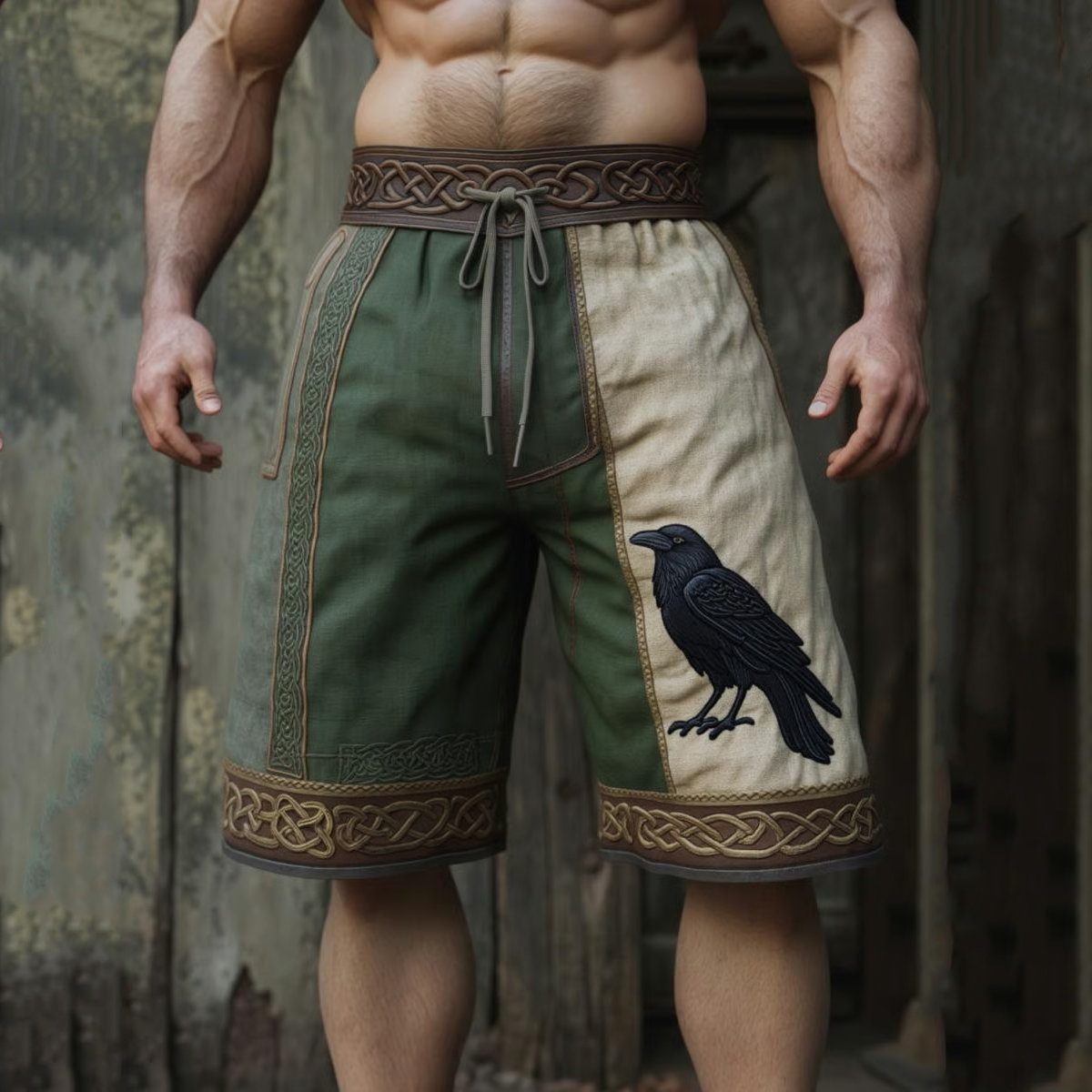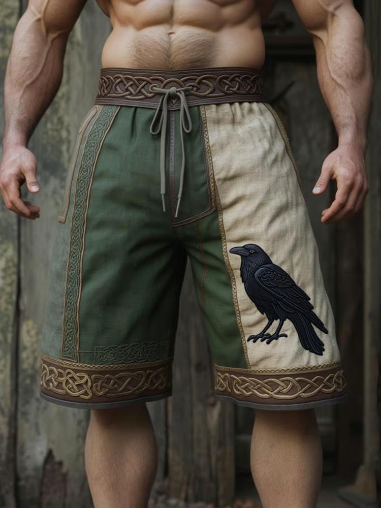 Men's Vintage Viking Dark Raven With Celtic Knot Art Casual Linen Shorts