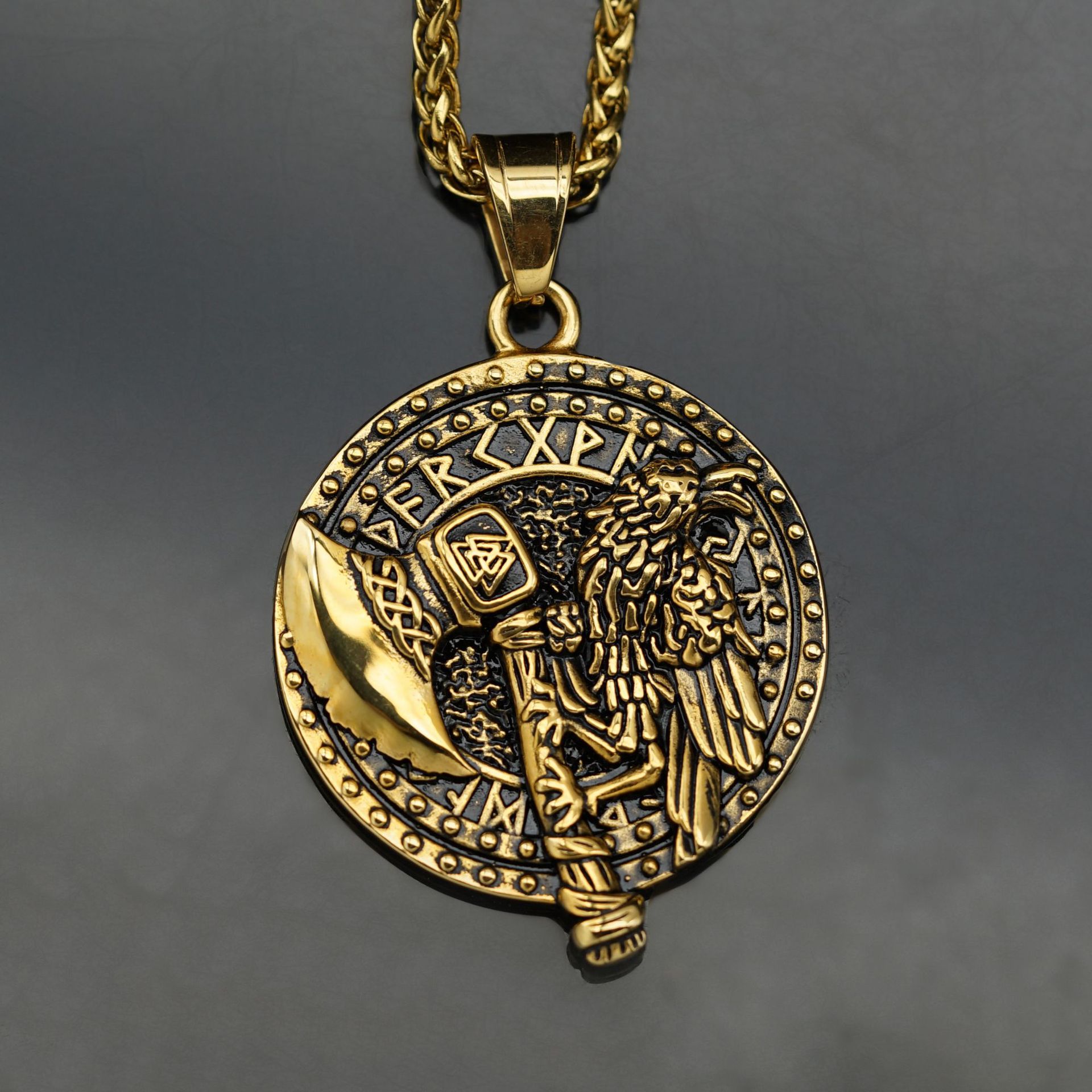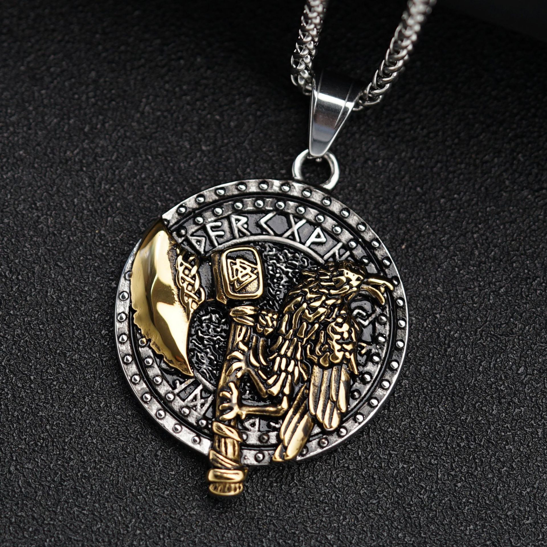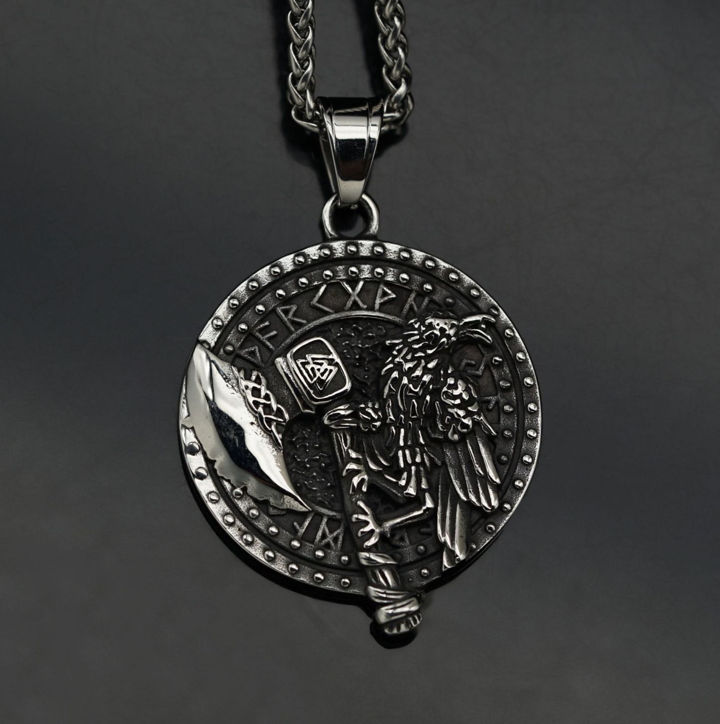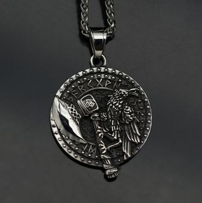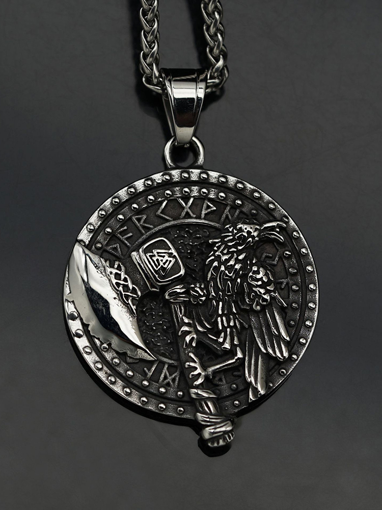 Viking Axe Crow Stainless Steel Men's Necklace (chain Not Included)