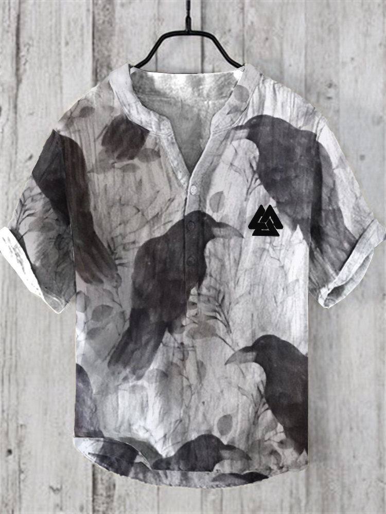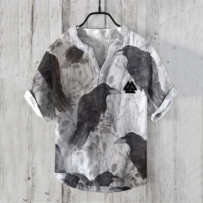 Viking Ink Crow Ethnic Art Linen Blend Shirt