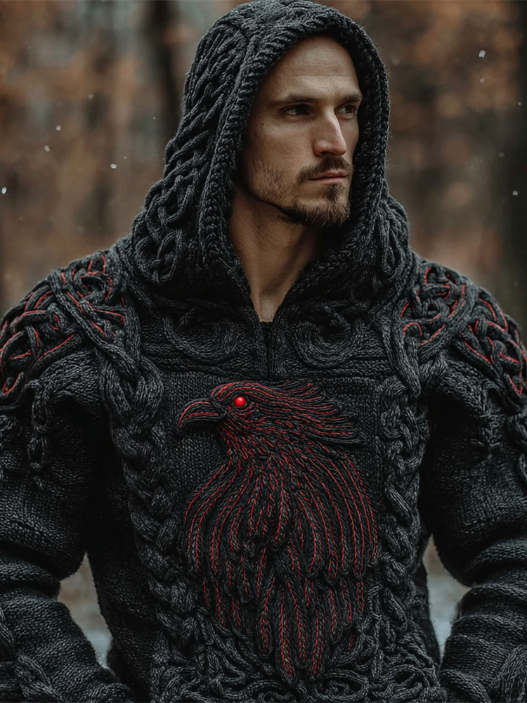 Viking Red-eyed Raven Halloween Art Men's Hooded Sweater