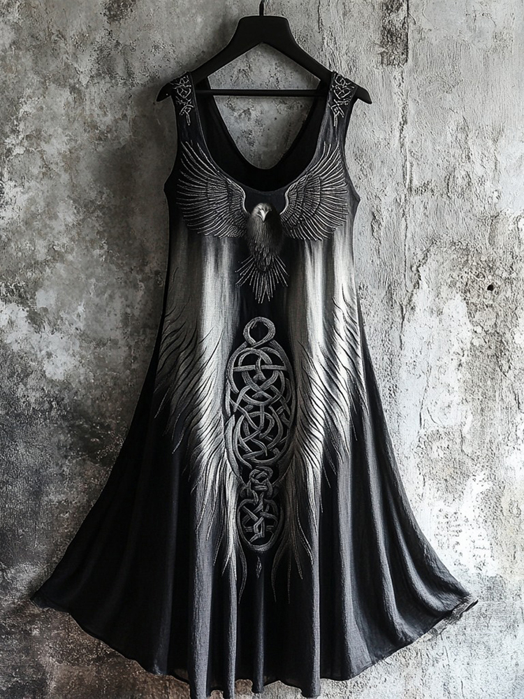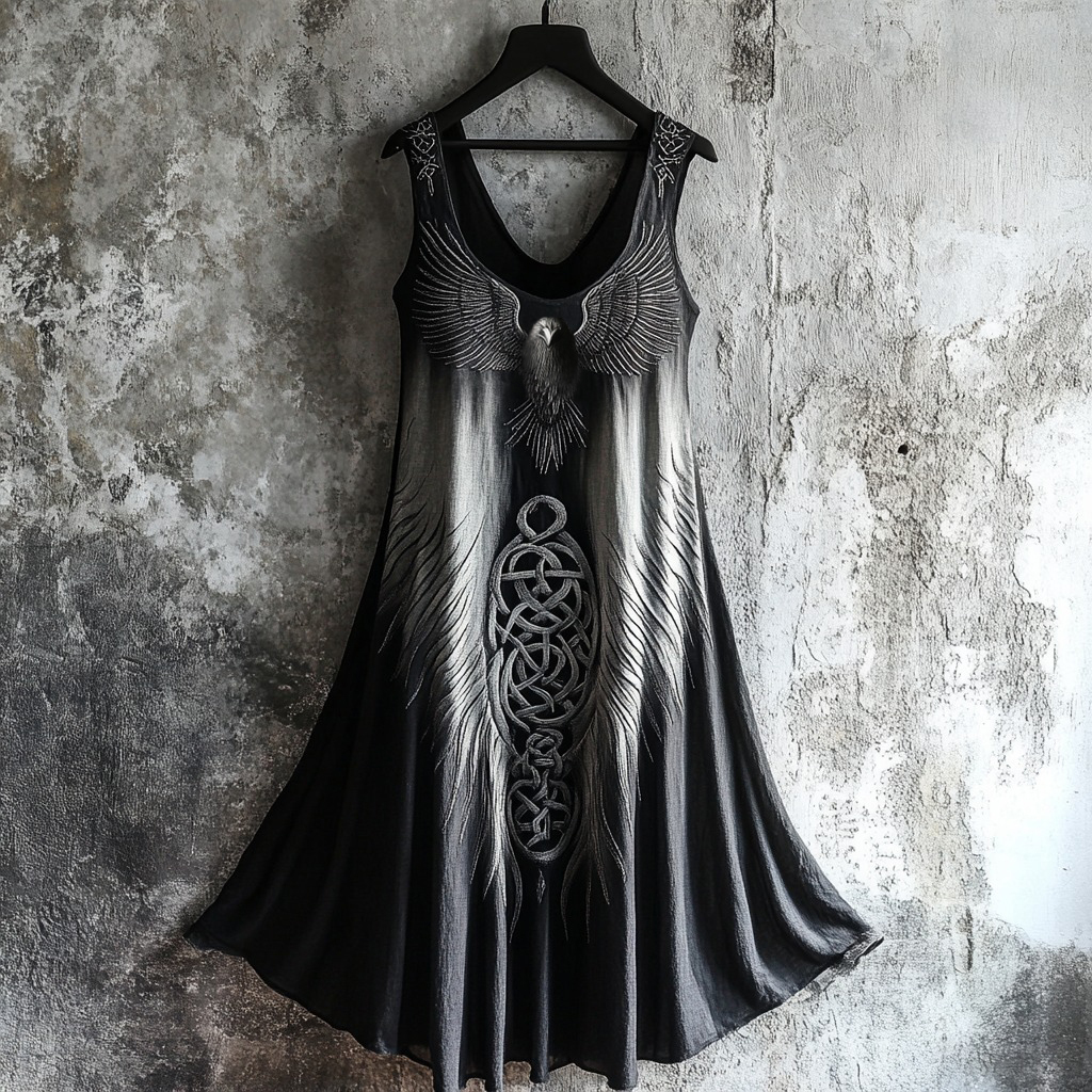 Vintage Raven Celtic Gradient 3d Graphics Linen Tank Dress