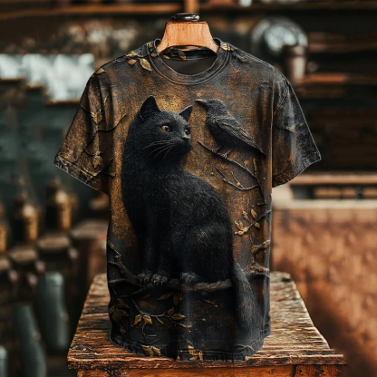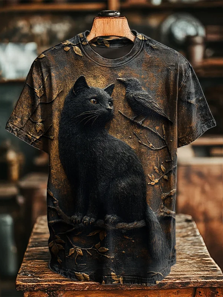 Vintage Viking Black Cat And Raven Art Men's T-shirt