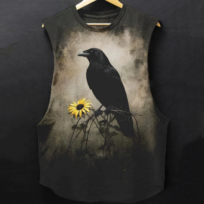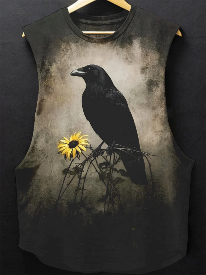 Vintage Viking Raven And Flower Print Washed Gym Vest