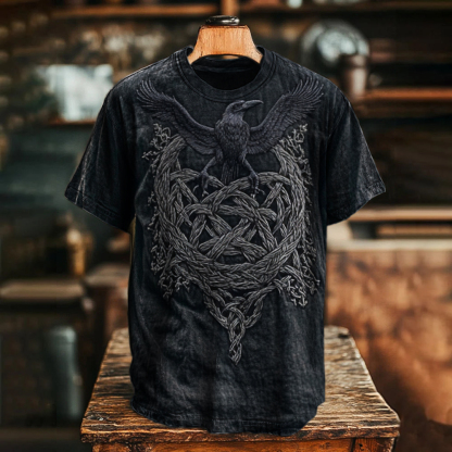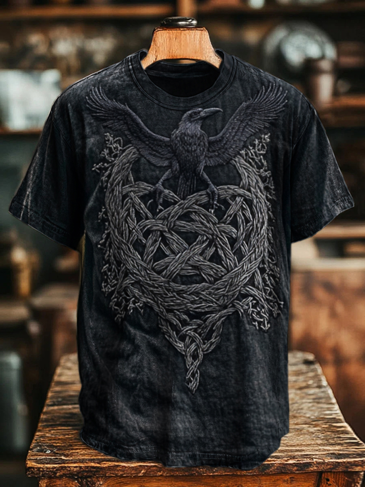 Vintage Viking Raven Vine Embroidered Men's T-shirt
